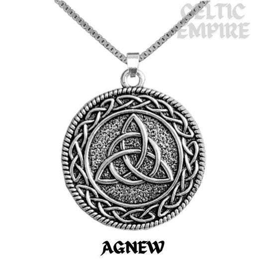 Agnew Family Clan Crest Celtic Interlace Disk Pendant, Scottish Family Crest