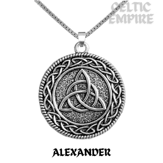 Alexander Family Clan Crest Celtic Interlace Disk Pendant, Scottish Family Crest
