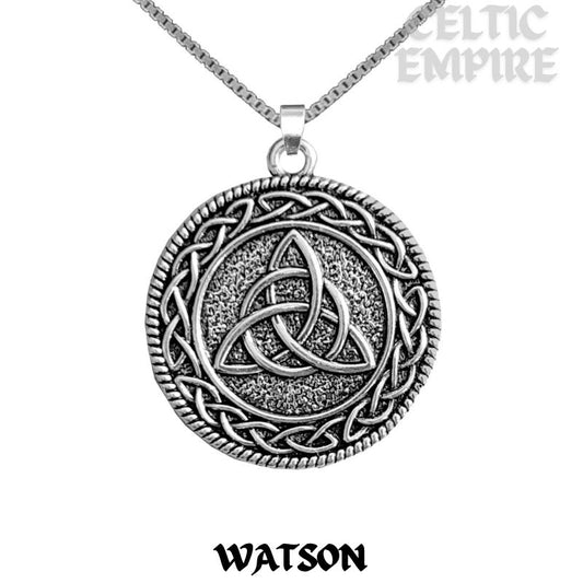 Watson Family Clan Crest Celtic Interlace Disk Pendant, Scottish Family Crest
