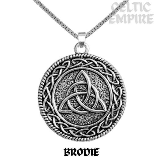 Brodie Family Clan Crest Celtic Interlace Disk Pendant, Scottish Family Crest
