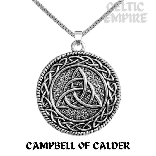 Campbell Calder Family Clan Crest Celtic Interlace Disk Pendant, Scottish Family Crest
