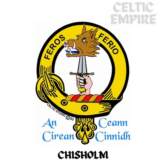 - The crest coronet adorned with distinctive elements, proudly showcasing the Chisholm clan's unique heritage.