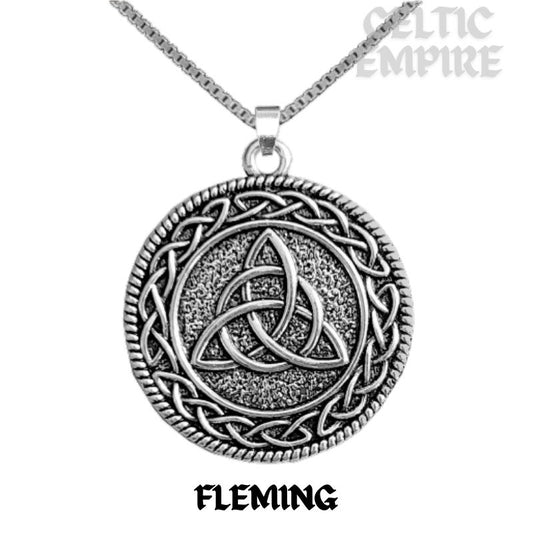 Fleming Family Clan Crest Celtic Interlace Disk Pendant, Scottish Family Crest