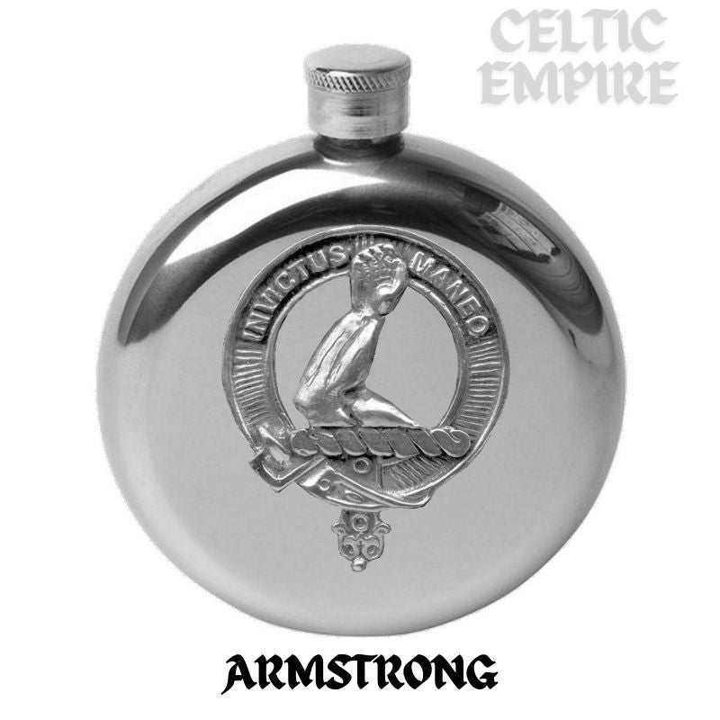Armstrong Round Family Clan Crest Scottish Badge Flask 5oz