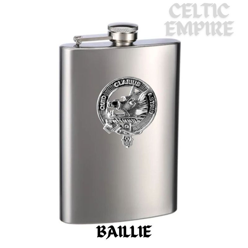 Baillie Family Clan Crest Scottish Badge Stainless Steel Flask 8oz