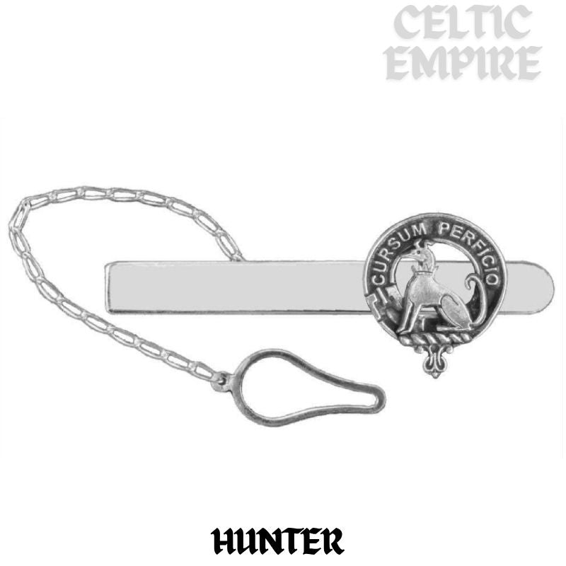 Hunter Family Clan Crest Scottish Button Loop Tie Bar Sterling silver