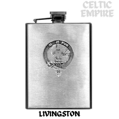 Livingston 8oz Family Clan Crest Scottish Badge Stainless Steel Flask