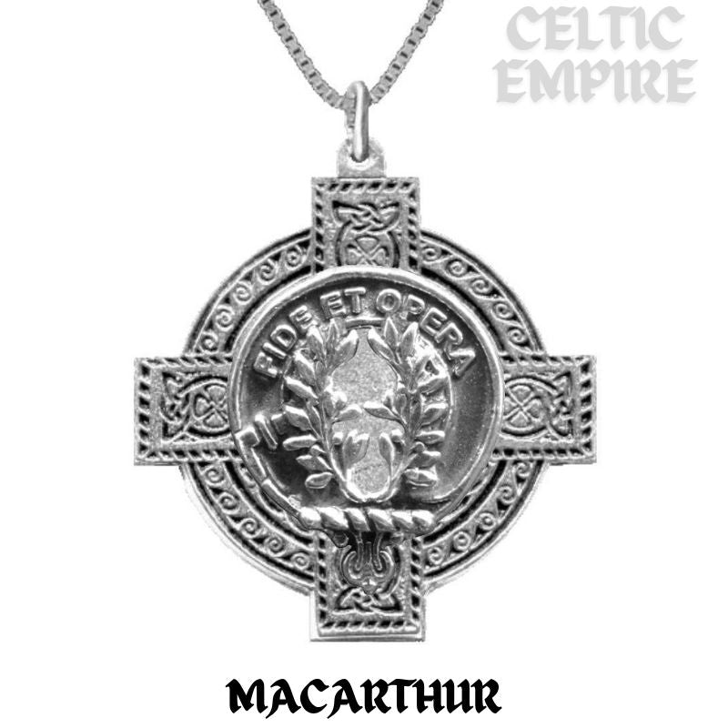 MacArthur Family Clan Crest Celtic Cross Pendant Scottish