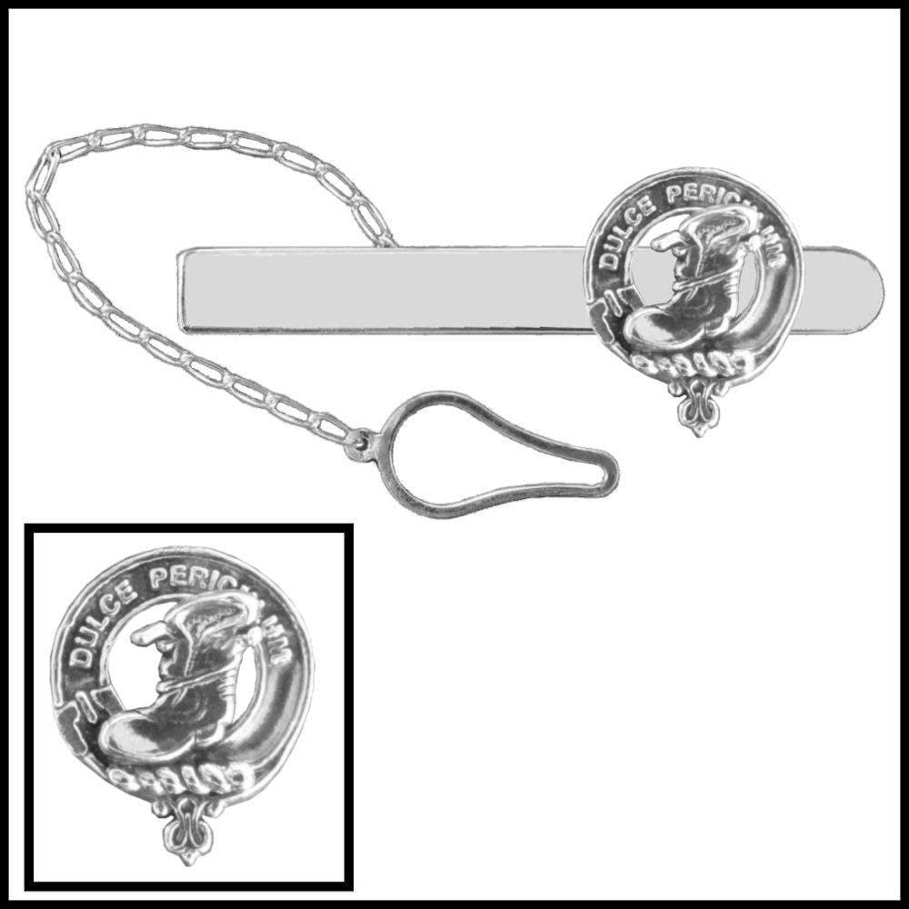 Mac Aulay Clan Crest Button Loop Tie Bar – Sterling Silver with Traditional Belt Motif
