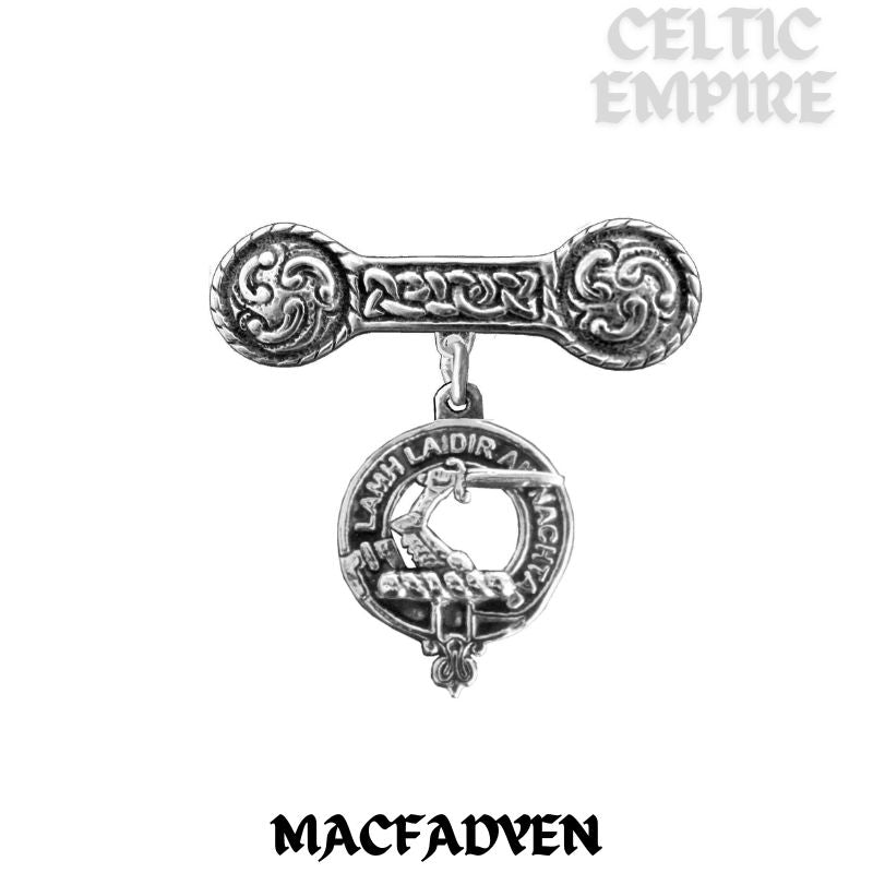 MacFadden Family Clan Crest Iona Bar Brooch - Sterling Silver