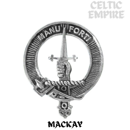 - Custom Clan Crest: Showcases a clan crest (11/16" or 19.5mm in diameter) in lead-free pewter or sterling silver, framed by a detailed belt and buckle motif with your clan motto in raised relief lettering.