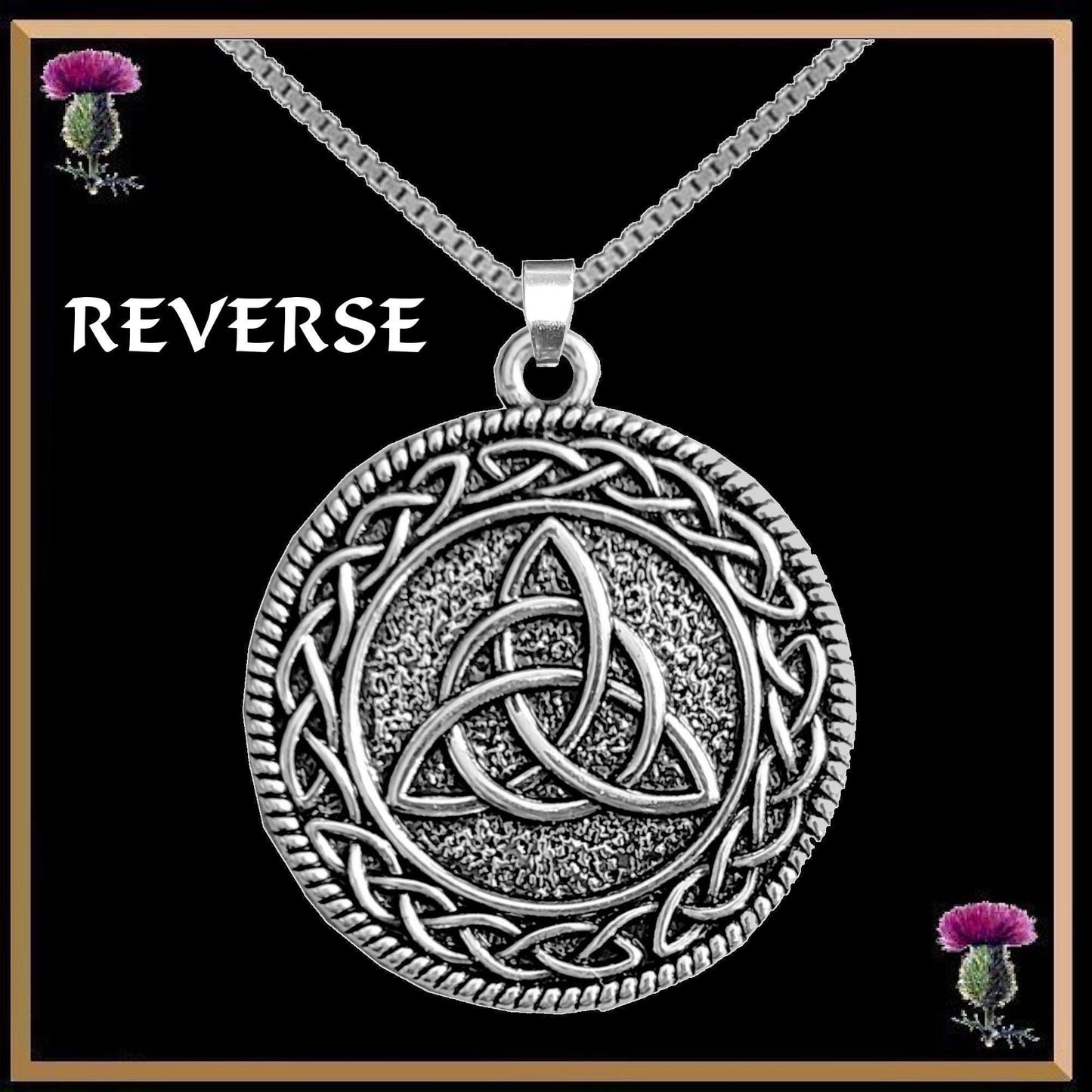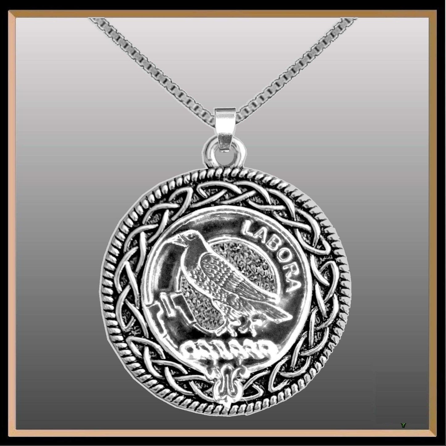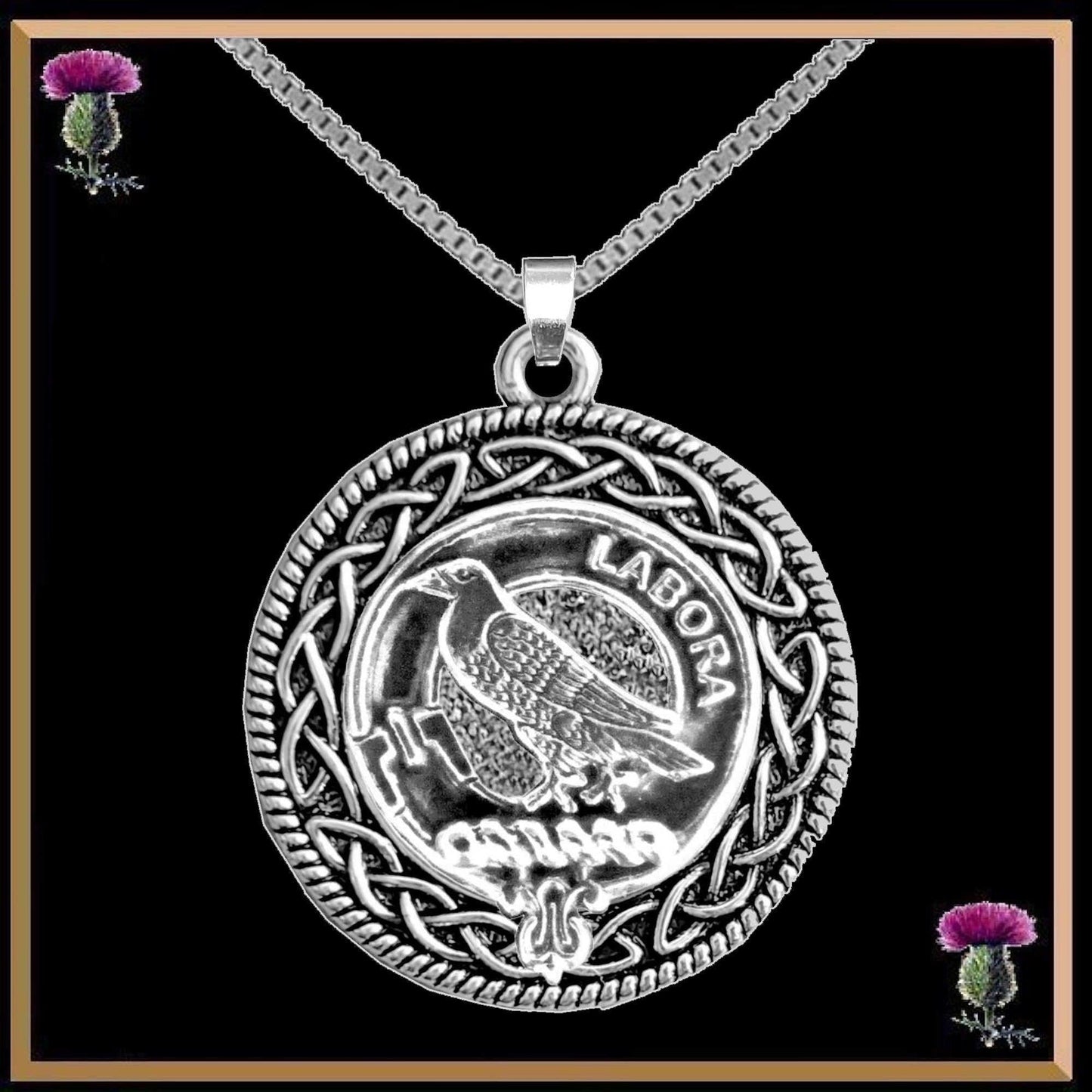 Embrace your Scottish and Irish lineage with the Clan Crest Interlace Pendant, a stunning fusion of ancient symbolism and modern craftsmanship. This exquisitely detailed piece is designed to be worn as a lasting tribute to your heritage.