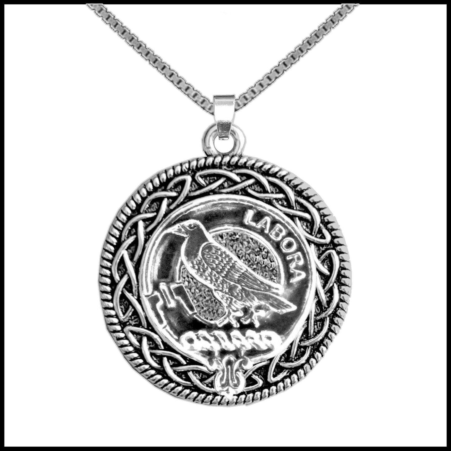 MacKie Family Clan Crest Celtic Interlace Disk Pendant, Scottish Family Crest