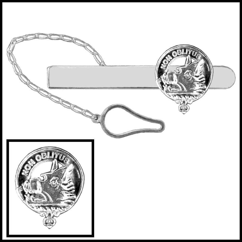 MacTavish Family Clan Crest Scottish Button Loop Tie Bar Sterling silver