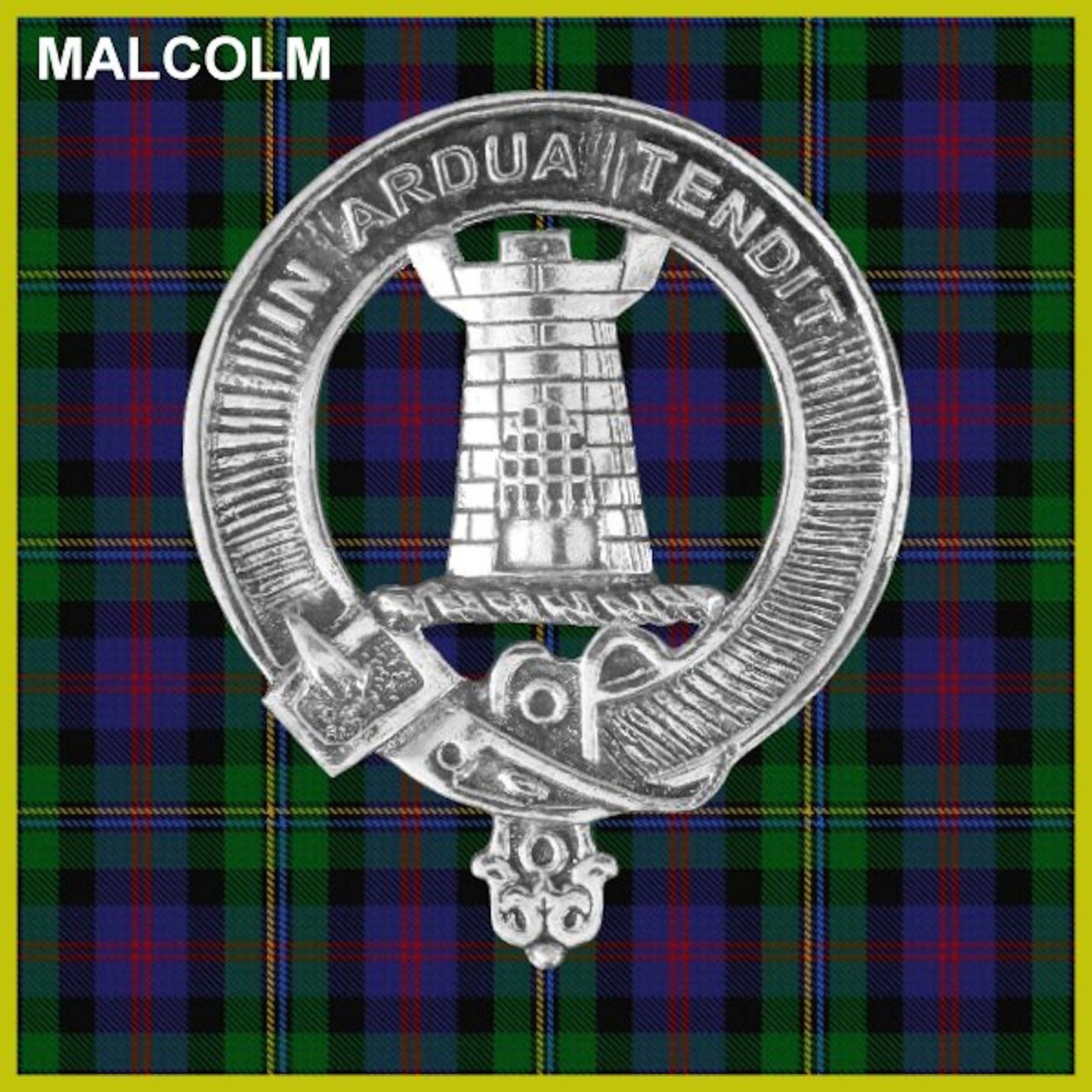 Malcolm 5oz Round Family Clan Crest Scottish Badge Flask