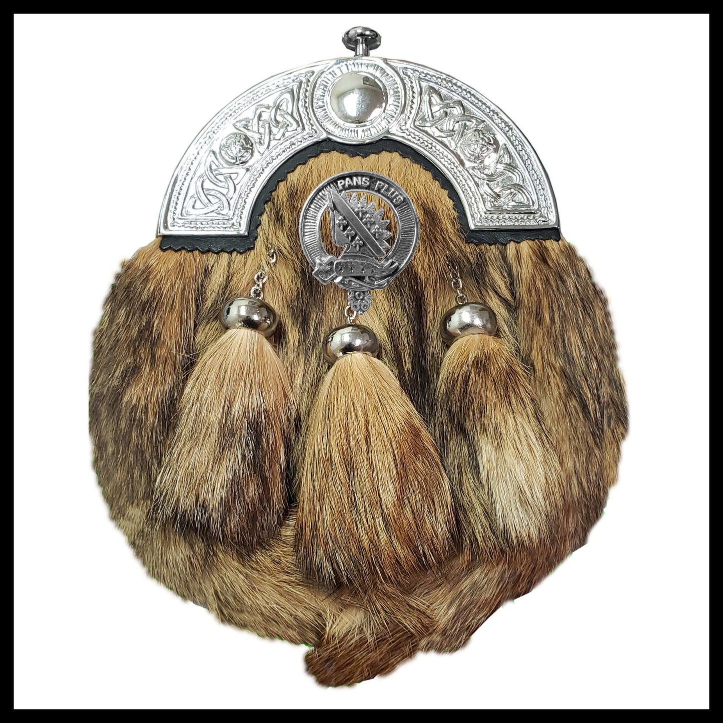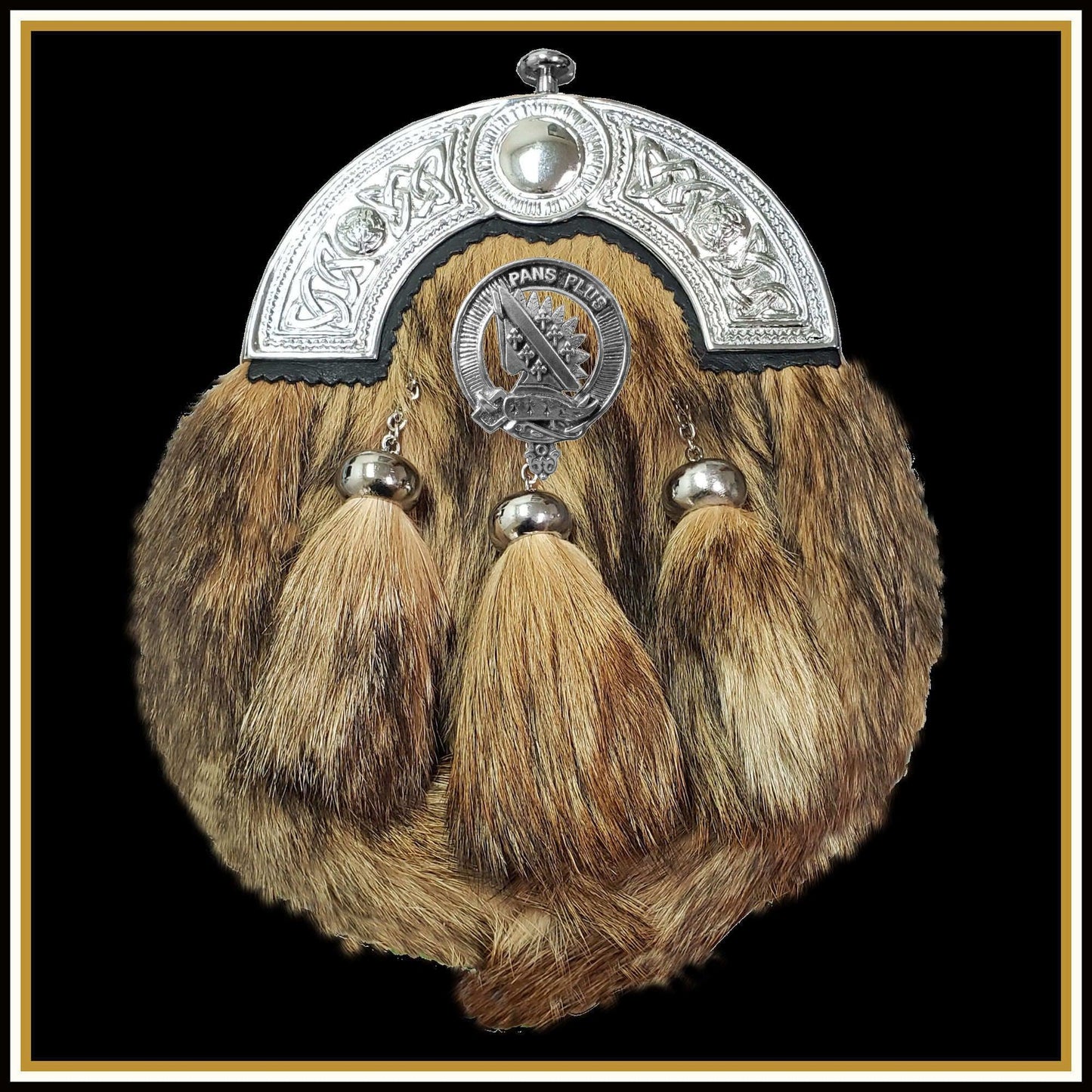🦌 Scottish Clan Crest Badge Fur Dress Sporran – Tradition Meets Elegance