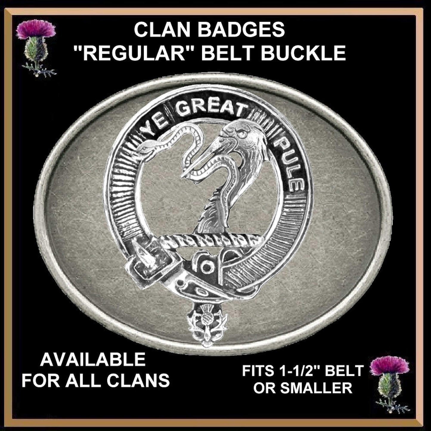 Showcase your proud Scottish roots with our Regular Sized Clan Crest Buckle, expertly crafted from antiqued brass and set with your personalized Clan badge. Designed for daily wear, this versatile buckle pairs perfectly with jeans or casual attire—allowing you to display your heritage wherever you go.