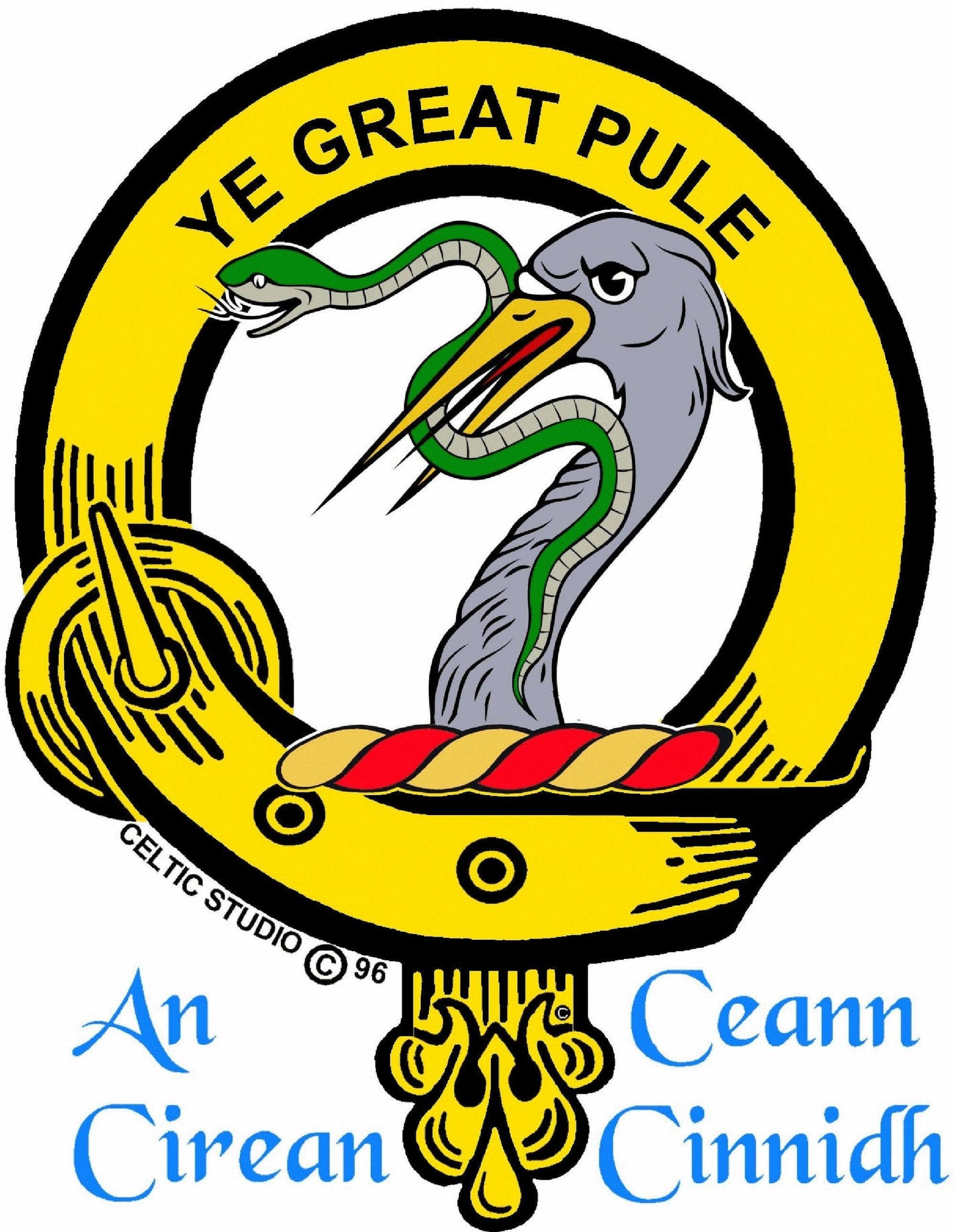 Design: Three-dimensional belt & buckle motif with raised relief Clan motto