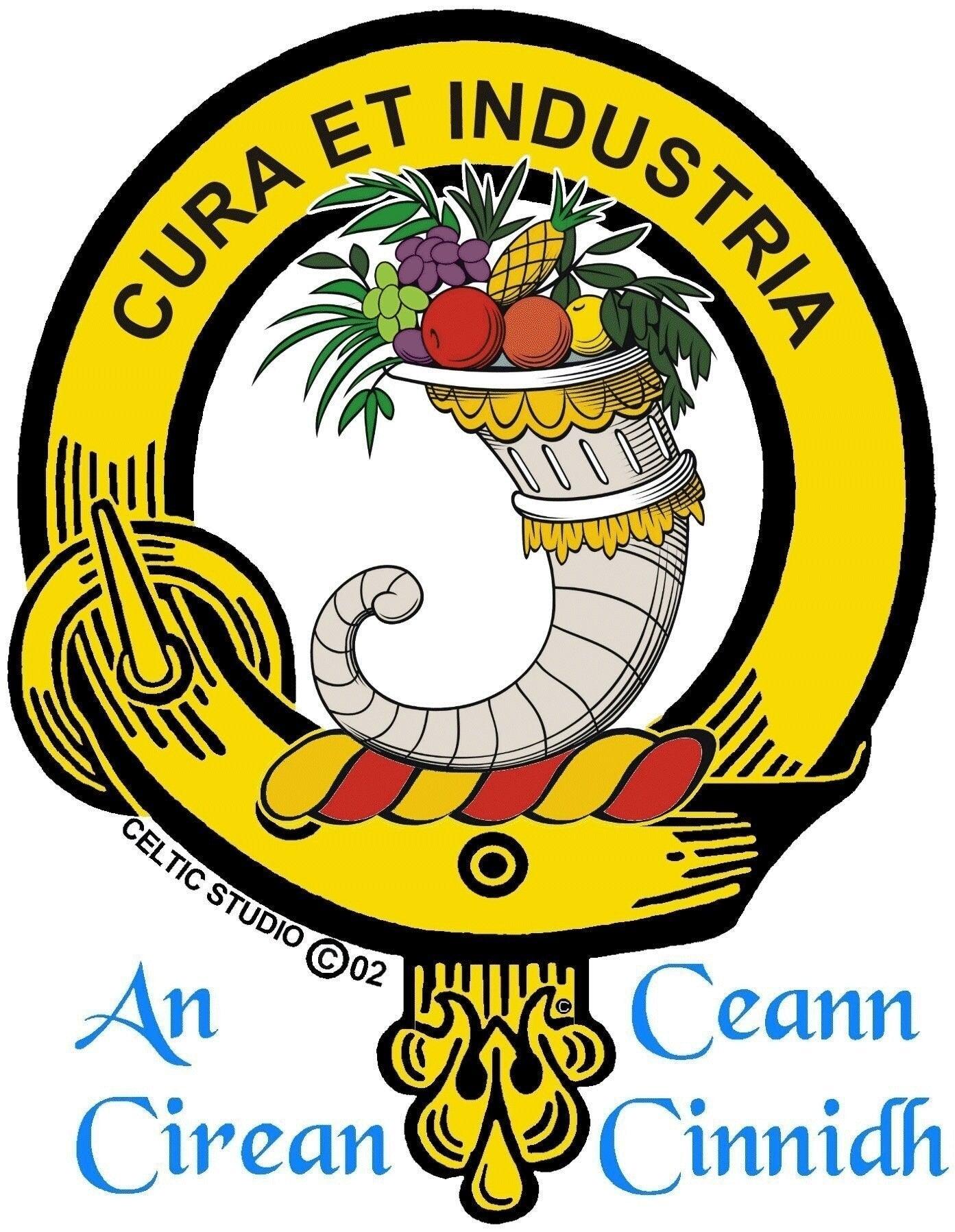 Symbolism: Encircled with a belt & buckle motif — a traditional sign of Clan allegiance